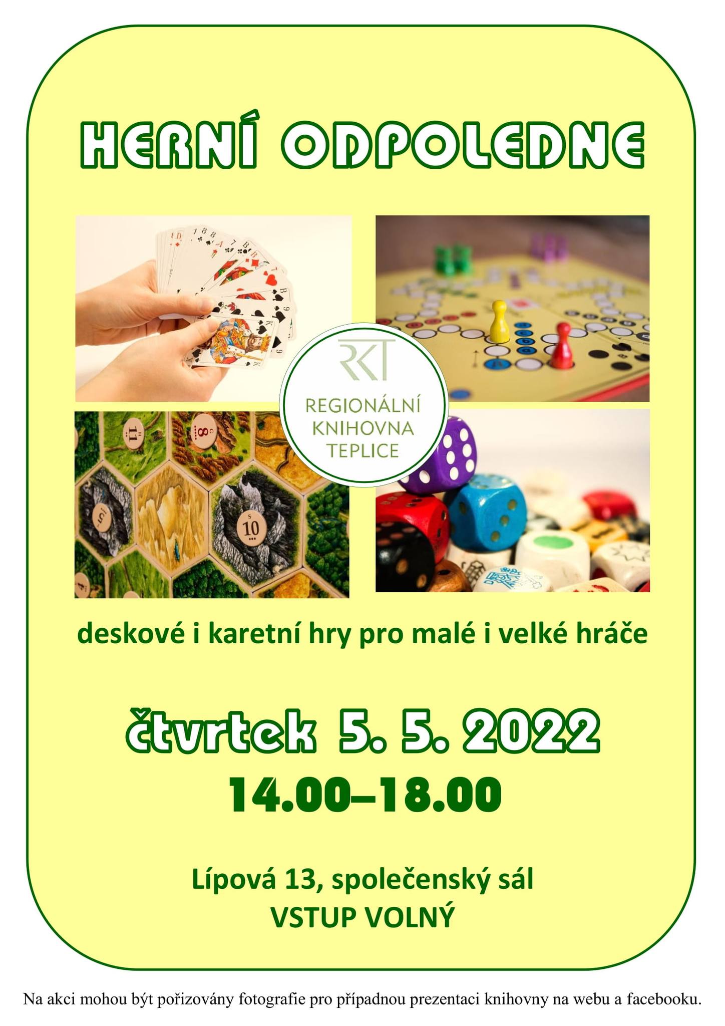 Přijďte strávit odpoledne v příjemném prostředí se zábavou, která nikdy neomrzí. Nebudou chybět deskové a karetní hry od těch klasických až po současné herní hity, a to pro dětské i dospělé hráče.