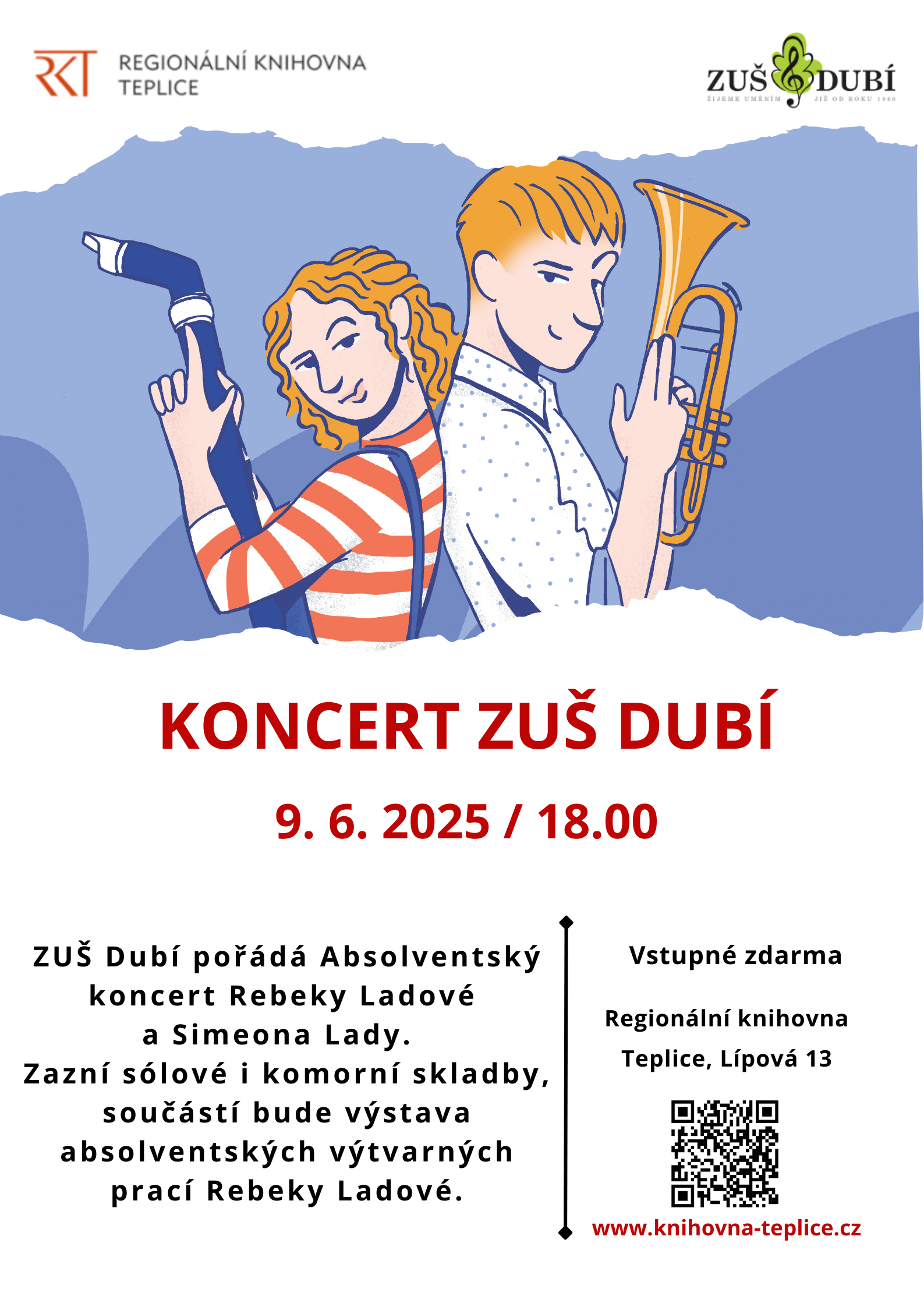 ZUŠ Dubí pořádá Absolventský koncert Rebeky Ladové a Simeona Lady.