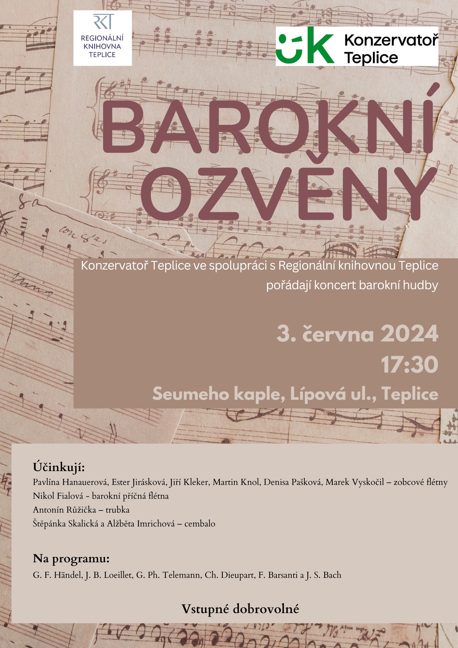 G. F. Händel, J. B. Loeillet, G. Ph. Telemann, Ch. Dieupart, F. Barsanti a J. S. Bach